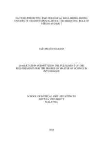 Maasha, Fathimath (2023) Factors predicting psychological well-being among university students in Maldives: the mediating role of stress and grit. Masters thesis, Sunway University.